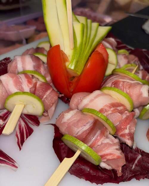 • Arrosti e Involtini, arrosto di maiale succulento, rollè di carne farciti e sfiziosi spiedini di lonza con prosciutto e formaggio.
